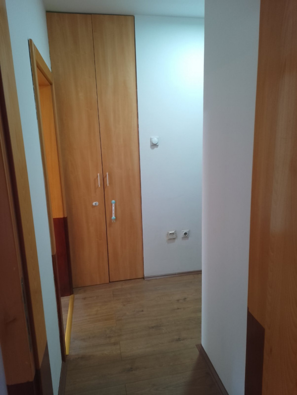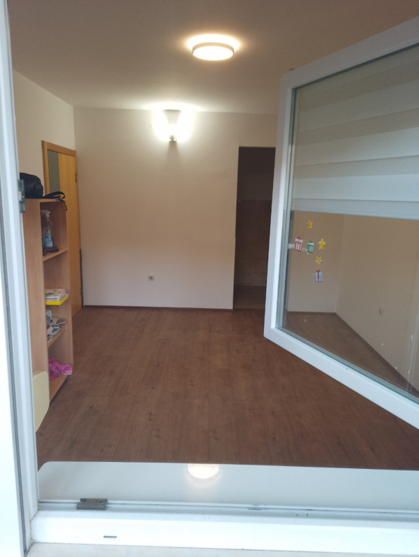 Ulazni hodnik,kupatilo,kuhinja odvojena,dve sobe ,terasa i ostava.Prodaje se sa kuhinjskim elementima.